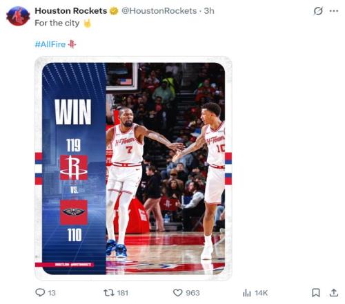 北京时间1月19日,火箭119-110击败鹈鹕拿到二连胜,这场比赛后火箭稳定了西部第五的席位。面对西部垫底的鹈鹕此役也打得并不轻松,第三节打完火箭只领先7分而已,阿门最终鏖战40分钟,小贾鏖战41分钟,37岁的杜兰特也鏖战36分钟才拿下胜利。