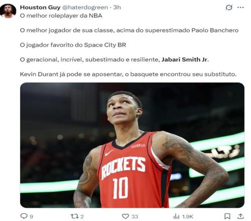 赛后休媒这样写道:小贾可能是联盟最出色的角色球员,他在同届球员选秀时他的排名一度是超过班凯罗,小贾是一位极具天赋被低估的、坚韧不拔的选手,在杜兰特退役后他可以直接进行接班。
