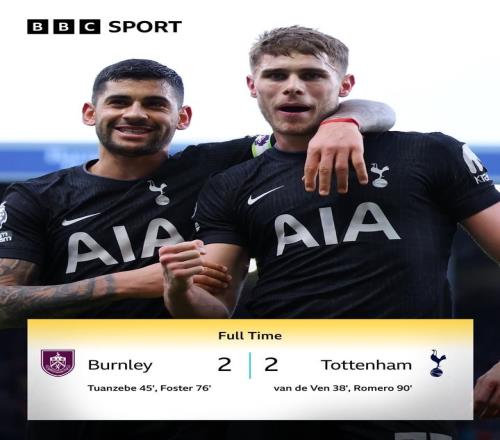 半场热刺暂11伯恩利范德芬破门图安泽贝扳平