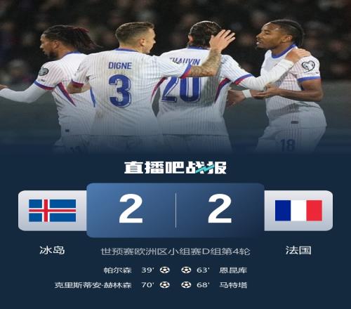 三连胜终结!法国2-2客平冰岛 恩昆库建功马特塔破门
